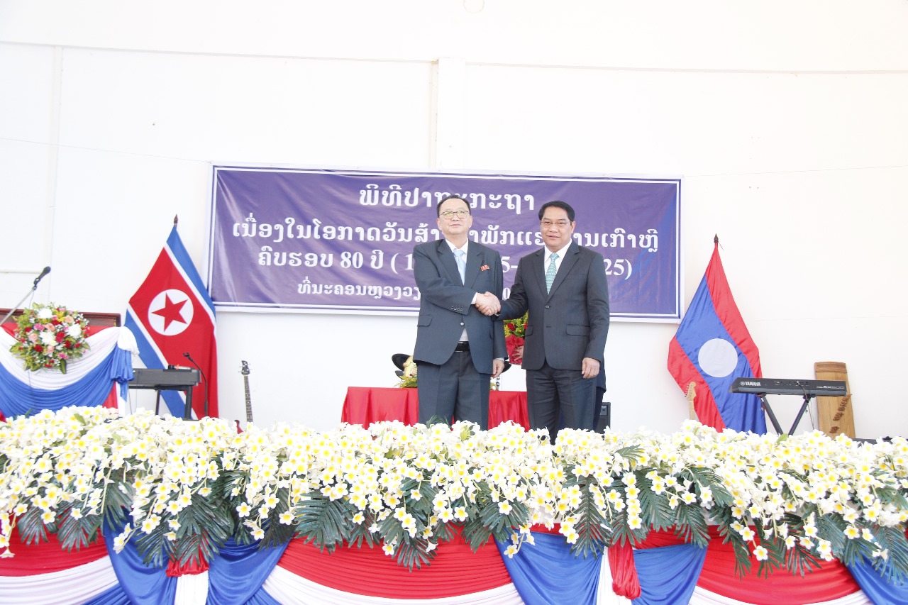 ສະມາຄົມມິດຕະພາບລາວ – ສປປ ເກົາຫຼີ, ໂຮງຮຽນມັດທະຍົມສົມບູນມິດຕະພາບລາວ – ສປປ ເກົາຫຼີ ຮ່ວມກັບສະຖານເອກອັກຄະລັດຖະທູດແຫ່ງ ສປປ ເກົາຫຼີ ປະຈຳ ສປປ ລາວ ໄດ້ຈັດພິທີປະກາດຊື່ໂຮງຮຽນມັດທະຍົມສົມບູນມິດຕະພາບລາວ – ສປປ ເກົາຫຼີ ແລະ ປາຖະກະຖາວັນສ້າງຕັ້ງພັກແຮງງານເກົາຫຼີ ຄົບຮອບ 80 ປີ (10/10/1945-10/10/2025) ໃນວັນທີ 9 ຕຸລານີ້ ທີ່ບ້ານນາຄວາຍ ເມືອງໄຊເສດຖາ ນະຄອນຫຼວງວຽງຈັນ. ເປັນກຽດໃນພິທີ ໂດຍ ສະຫາຍ ອາດສະພັງທອງ ສີພັນດອນ ກຳມະການສູນກາງພັກ ປະທານຄະນະກຳມະການປົກຄອງນະຄອນຫຼວງວຽງຈັນ ປະທານສະມາຄົມມິດຕະພາບລາວ – ສປປ ເກົາຫຼີ, ສະຫາຍ ລີ ຢົງ ຊົນ ເອກອັກຄະລັດຖະທູດວິສາມັນຜູ້ມີອຳນາດເຕັມແຫ່ງ ສປປ ເກົາຫຼີ ປະຈຳ ສປປ ລາວ, ສະຫາຍ ນາງ ວິລະວອນ ພັນທະວົງ ຄະນະປະຈໍາພັກ ຮອງຫົວໜ້າຄະນະໂຄສະນາອົບຮົມສູນກາງພັກ, ມີບັນດາສະຫາຍຕາງໜ້າຈາກຫ້ອງວ່າການສູນກາງພັກ, ສຳນັກງານນາຍົກລັດຖະມົນຕີ, ກະຊວງການຕ່າງປະເທດ, ກະຊວງສຶກສາທິການ ແລະ ກິລາ, ສາມອົງການຈັດຕັ້ງມະຫາຊົນນະຄອນຫຼວງ, ສະຫາຍ ນາງ ວິໄລວອນ ຈັນທະລາຕີ ປະທານຄະນະກຳມະການປົກຄອງເມືອງໄຊເສດຖາ ພະແນກສຶກສາທິການ ແລະ ກິລາ ນະຄອນຫຼວງວຽງຈັນ ແລະ ຫ້ອງການສຶກສາທິການ ແລະ ກິລາ ເມືອງໄຊເສດຖາ, ມີບັນດາຄະນະປົກຄອງບ້ານນາຄວາຍ, ຈາກພາກສ່ວນທີ່ກ່ຽວຂ້ອງຂອງສູນກາງ, ພ້ອມດ້ວຍພະນັກງານຈາກສະຖານເອກອັກຄະລັດຖະທູດແຫ່ງ ສປປ ເກົາຫຼີ ປະຈຳ ສປປ ລາວ ເຂົ້າຮ່ວມປະມານ 300 ສະຫາຍ.